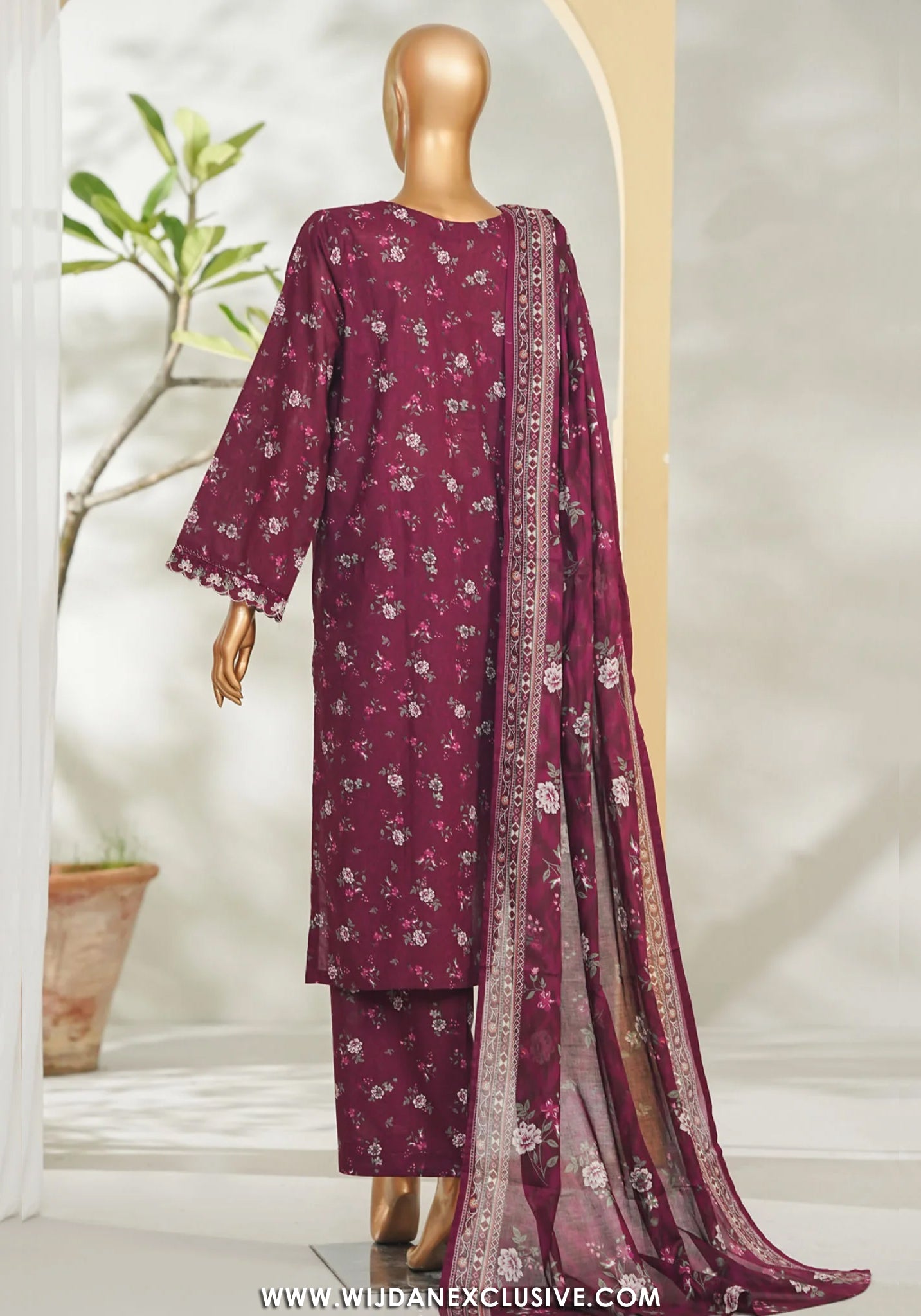 Wijdan Exclusive Store unveils this elegant Bin Saeed ensemble—a deep burgundy canvas adorned with delicate scattered floral prints in creams and whites. The refined neckline, decorative printed borders, and coordinated burgundy dupatta featuring the same botanical motifs showcase exceptional design. Bin Saeed delivers timeless sophistication with every carefully printed detail, perfect for celebrating life's most beautiful and cherished moments.