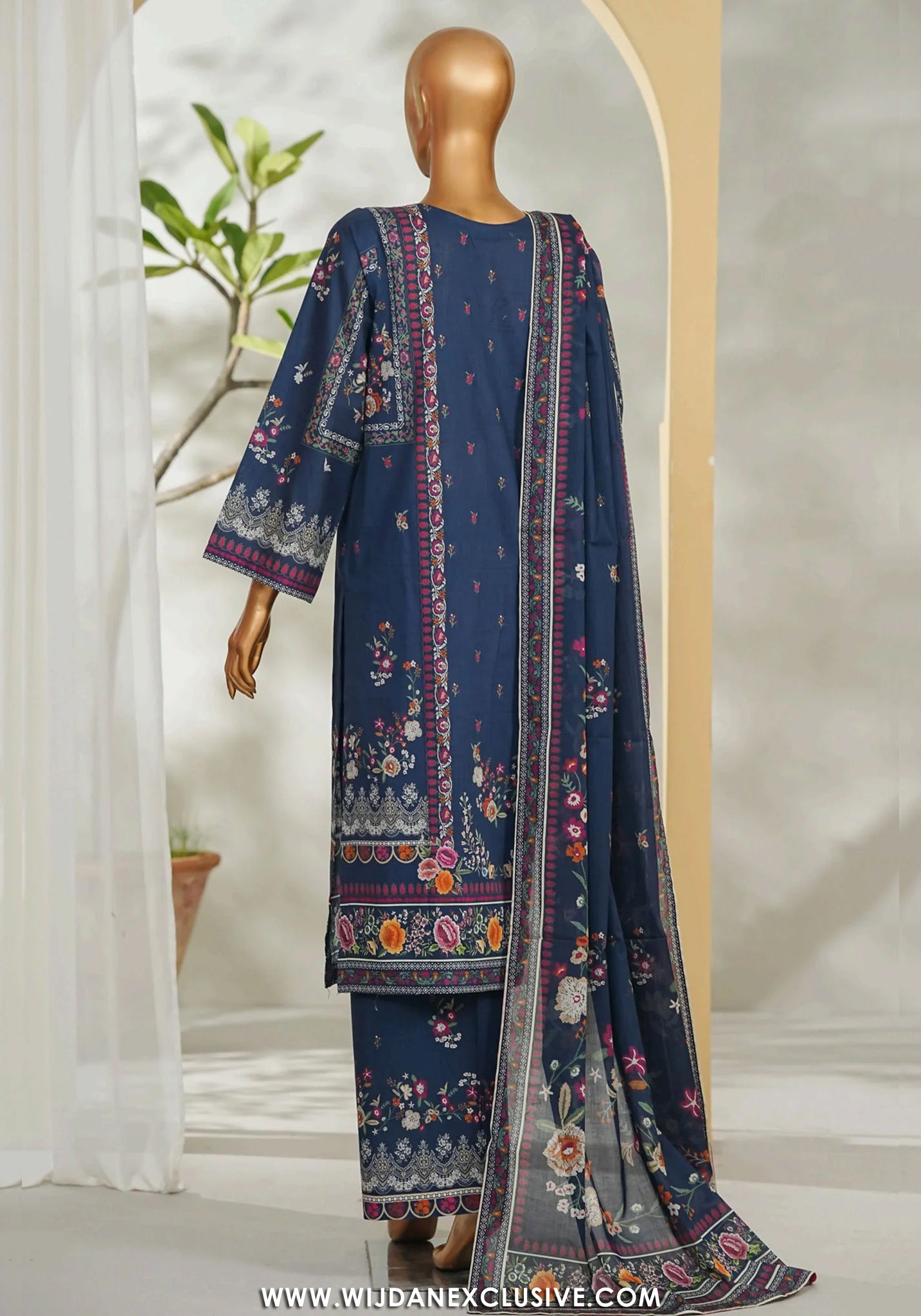Wijdan Exclusive Store unveils this regal Bin Saeed ensemble—a deep navy canvas adorned with vibrant scattered florals in reds, oranges, and whites. The flowing sleeves with striking decorative printed borders, charming tassel detail, coordinated navy pants, and navy dupatta featuring botanical prints showcase exceptional design artistry. Bin Saeed delivers regal sophistication with every carefully printed detail, perfect for celebrating life's most beautiful and special occasions.