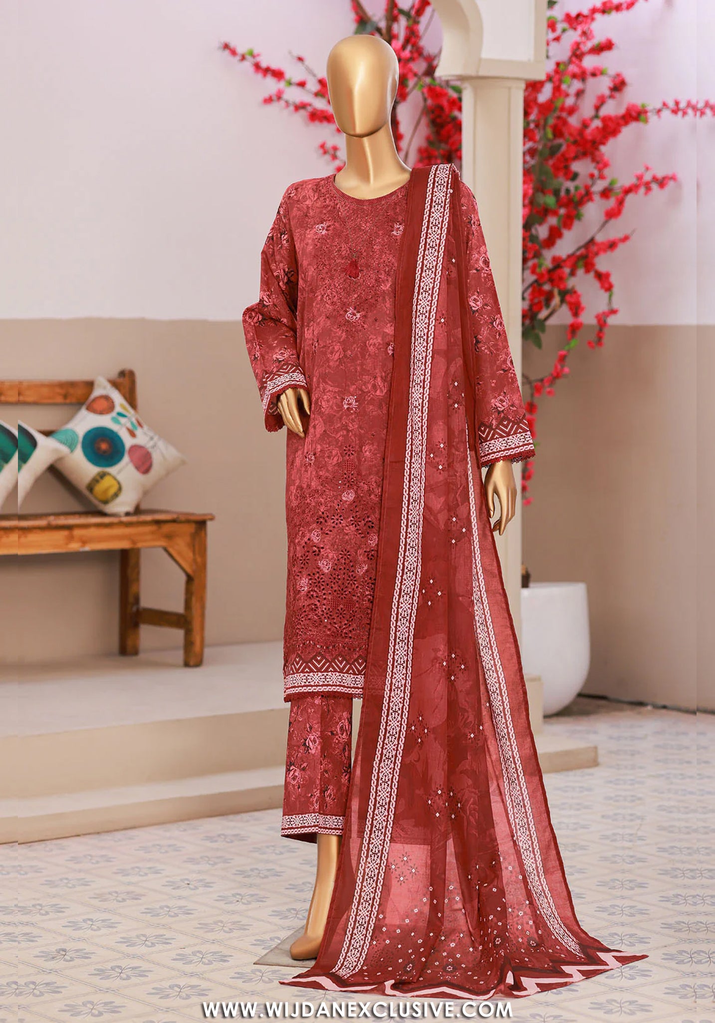 Wijdan Exclusive Store unveils this sophisticated HZ Textile ensemble—a burgundy masterpiece adorned with intricate white embroidery throughout. The delicately embellished neckline and matching dupatta showcase exceptional craftsmanship, while the ornate borders add refined elegance. HZ Textile delivers timeless sophistication with every carefully embroidered detail, perfect for celebrating life's most special moments.