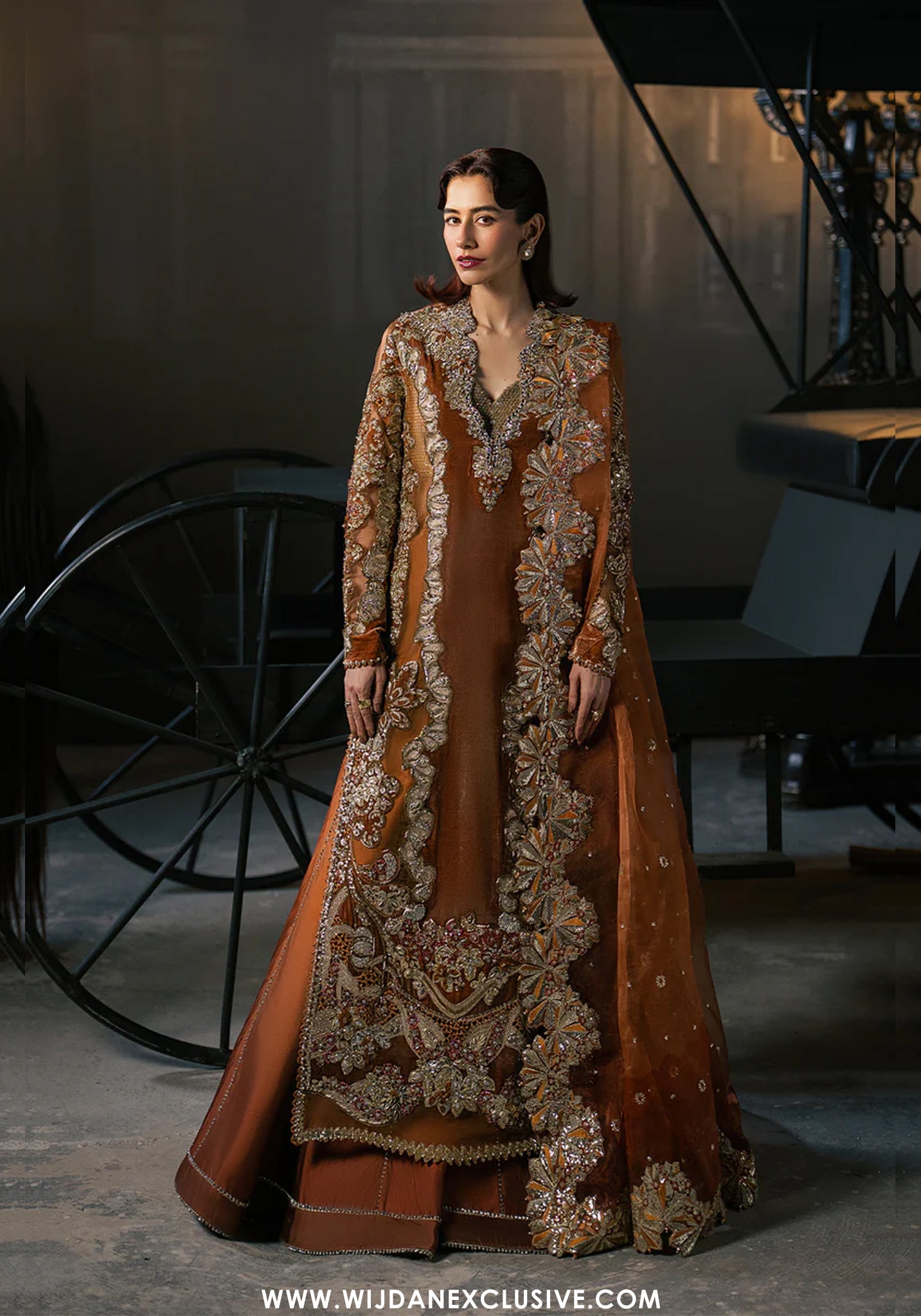RUST ORGANZA 55" HAND EMBELLISHED EMBROIDERED FRONT RIGHT PANEL 1 PC
