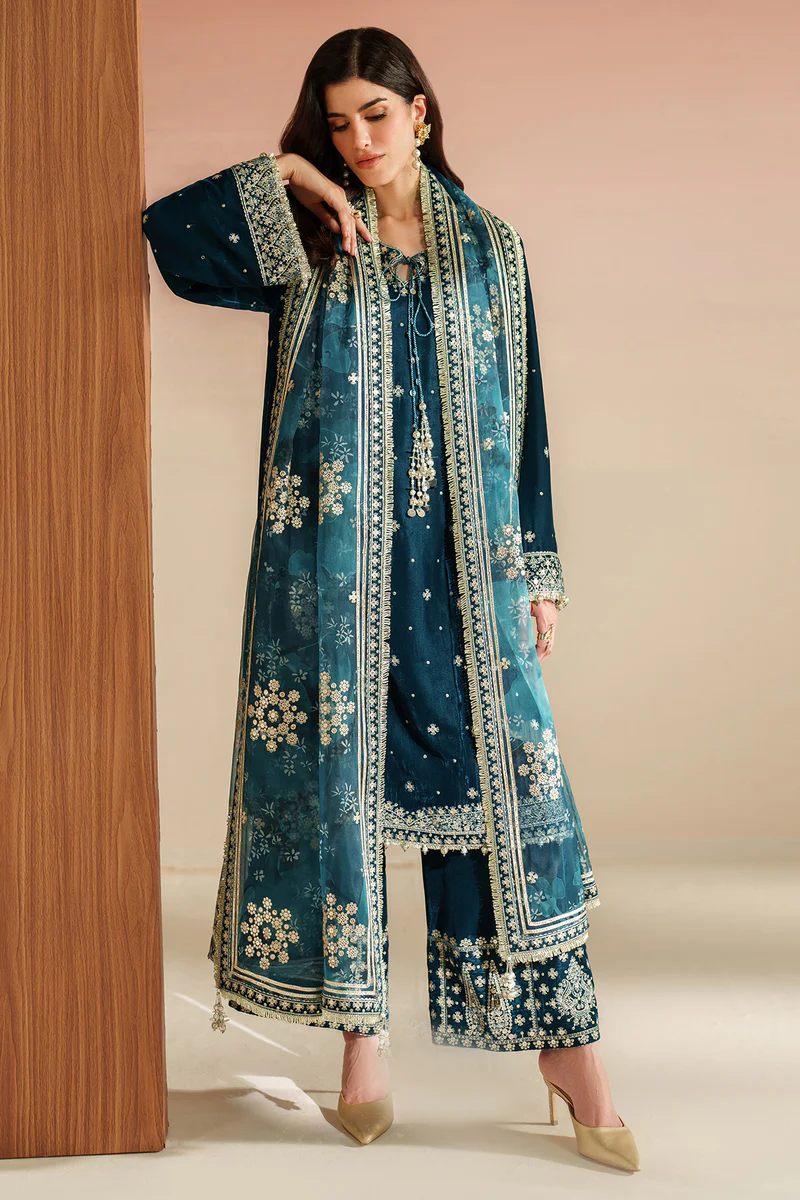 Embroidered Pure Velvet Front, Back & Sleeves Border