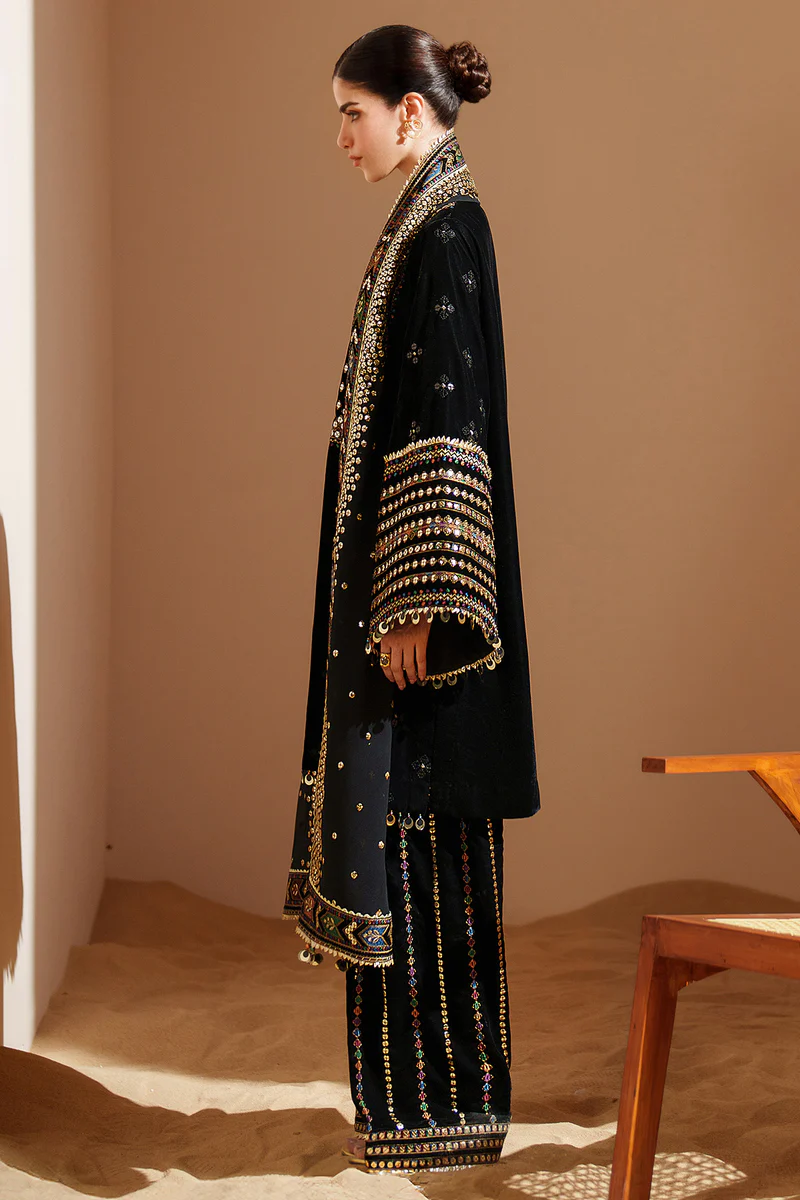 Embroidered Pure Velvet Sleeves & Sleeves Border