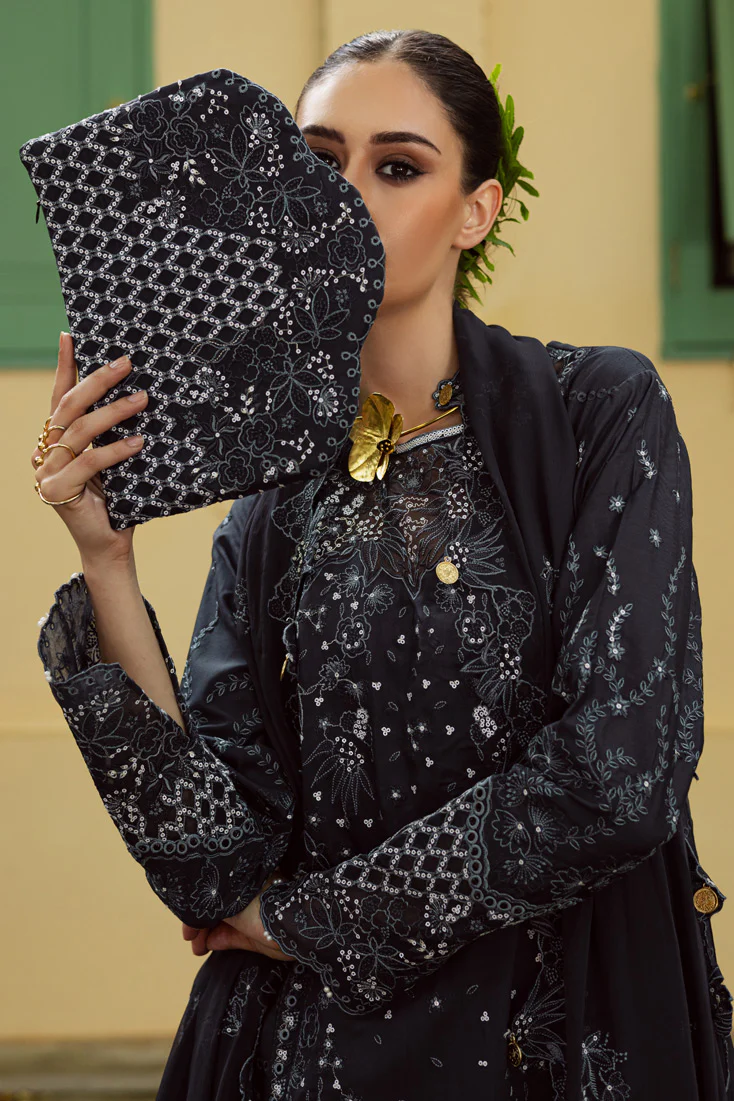 Dyed Viscose Sequins Embroidered Front