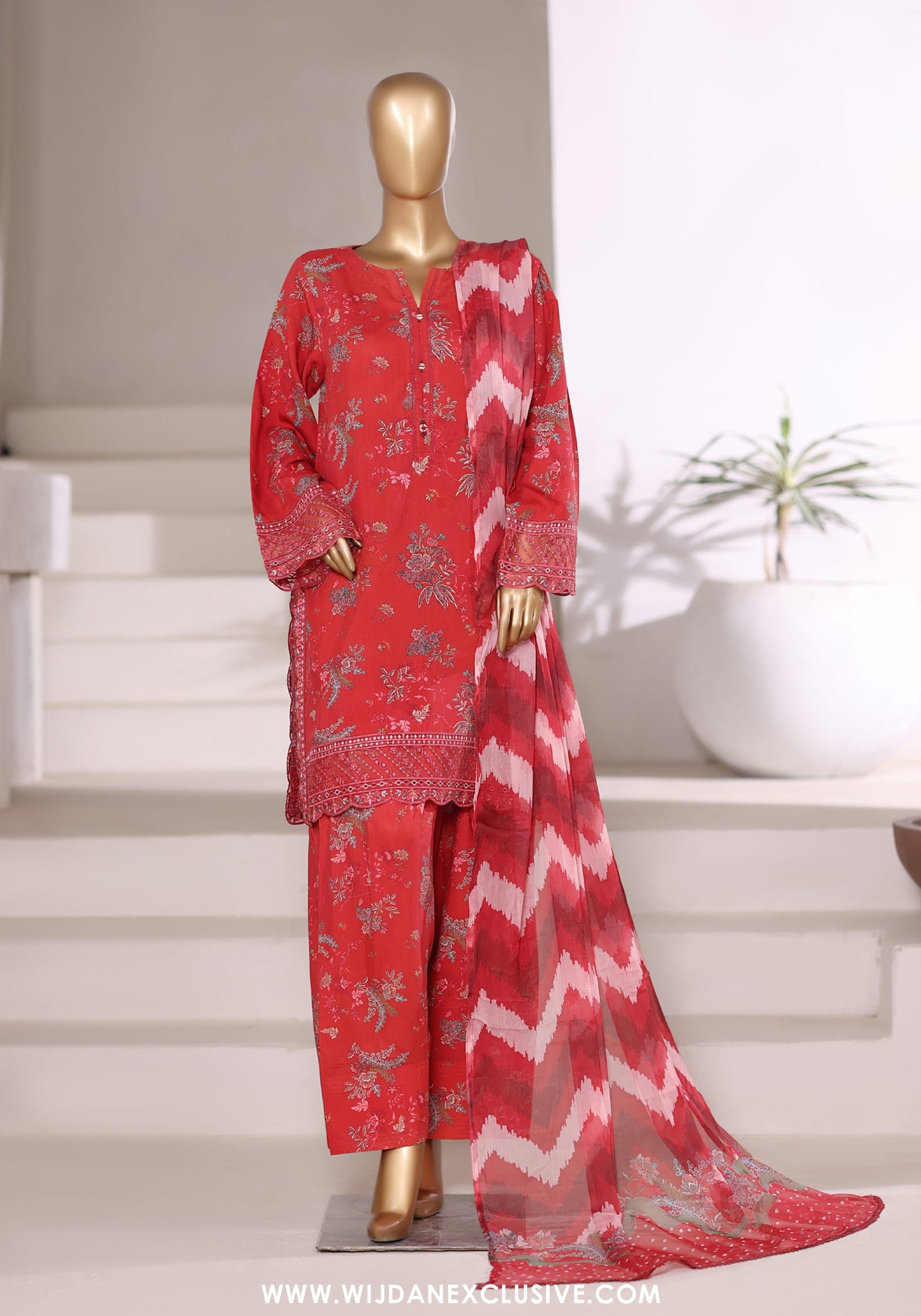Malika by Sadabahar | Stitched Embroidered Viscose Collection - 2025 (RED)