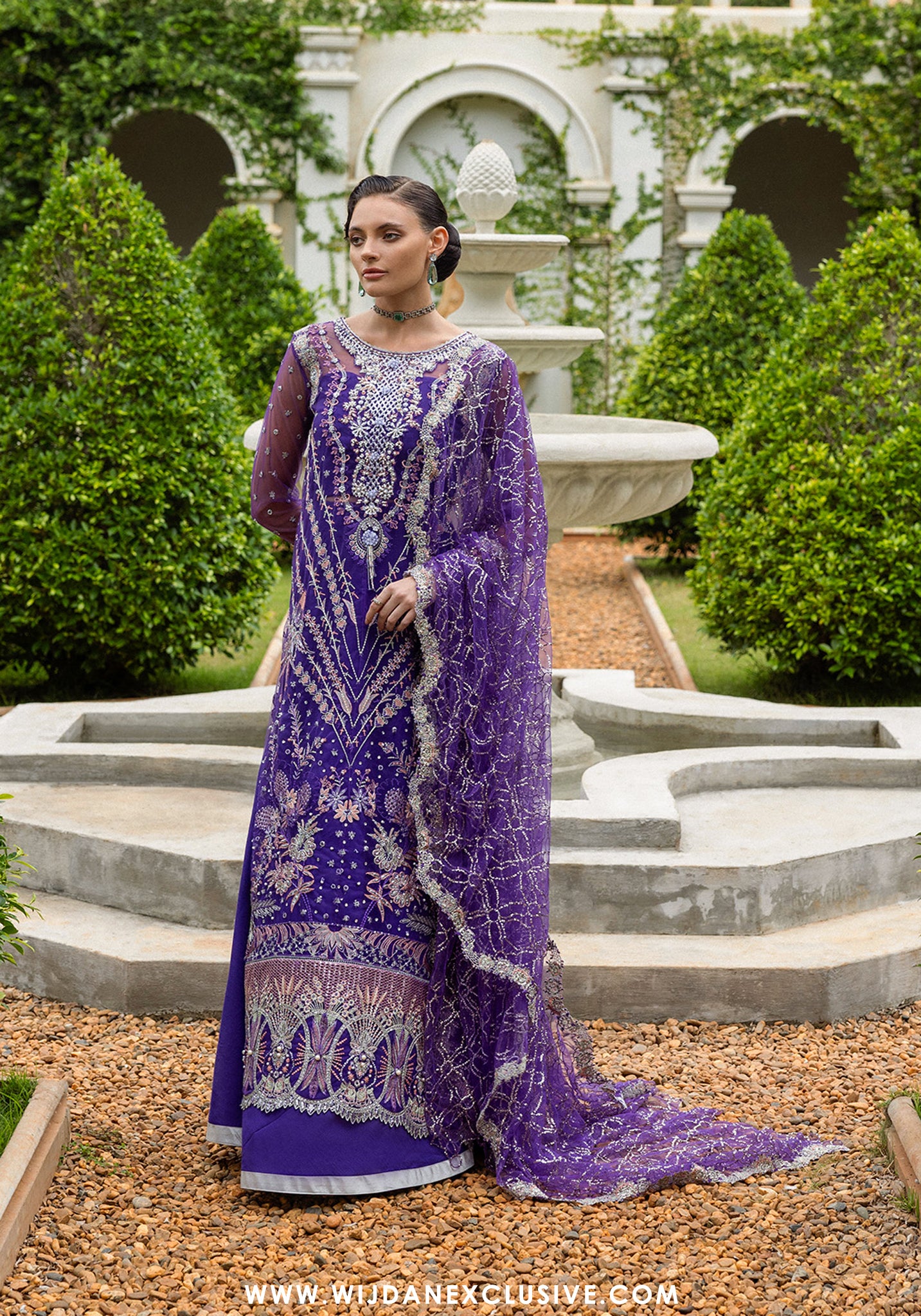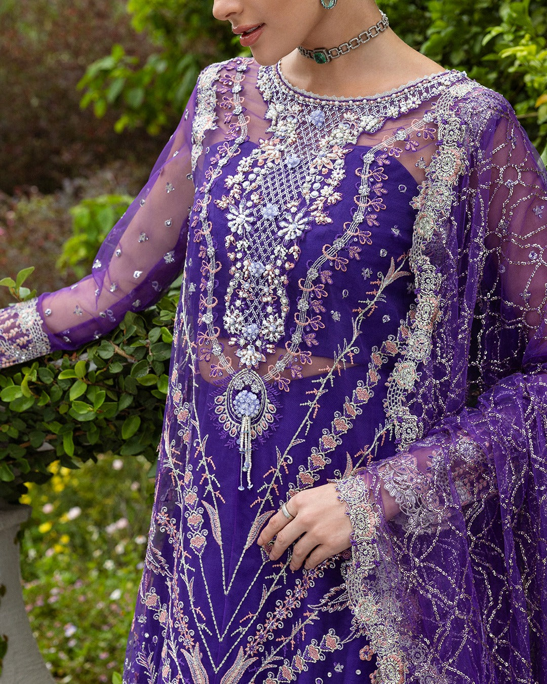 • Embroidered, sequined & hand embellished neckline (organza)