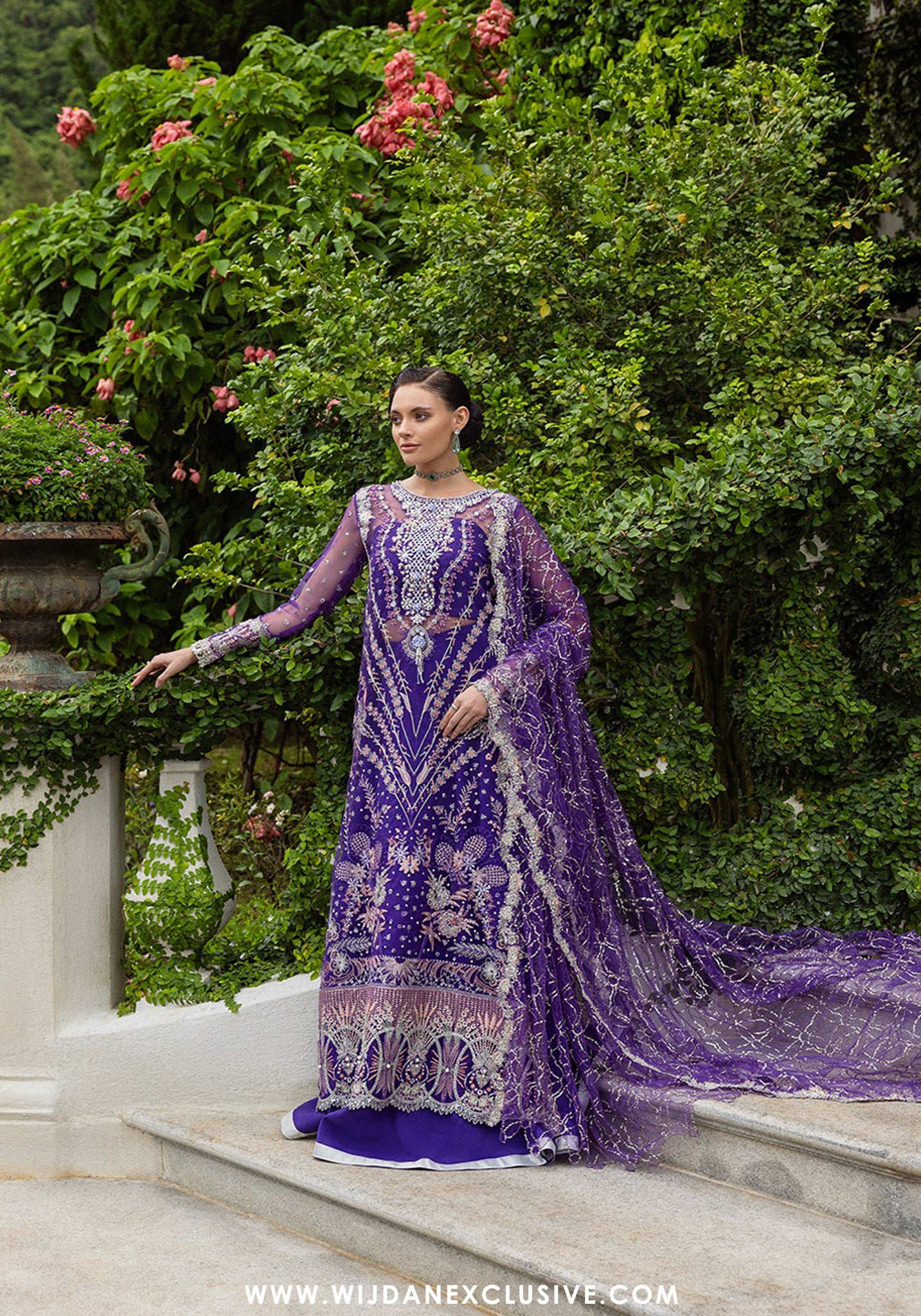 • Embroidered, sequined & pearl embellished finishing lace (organza)