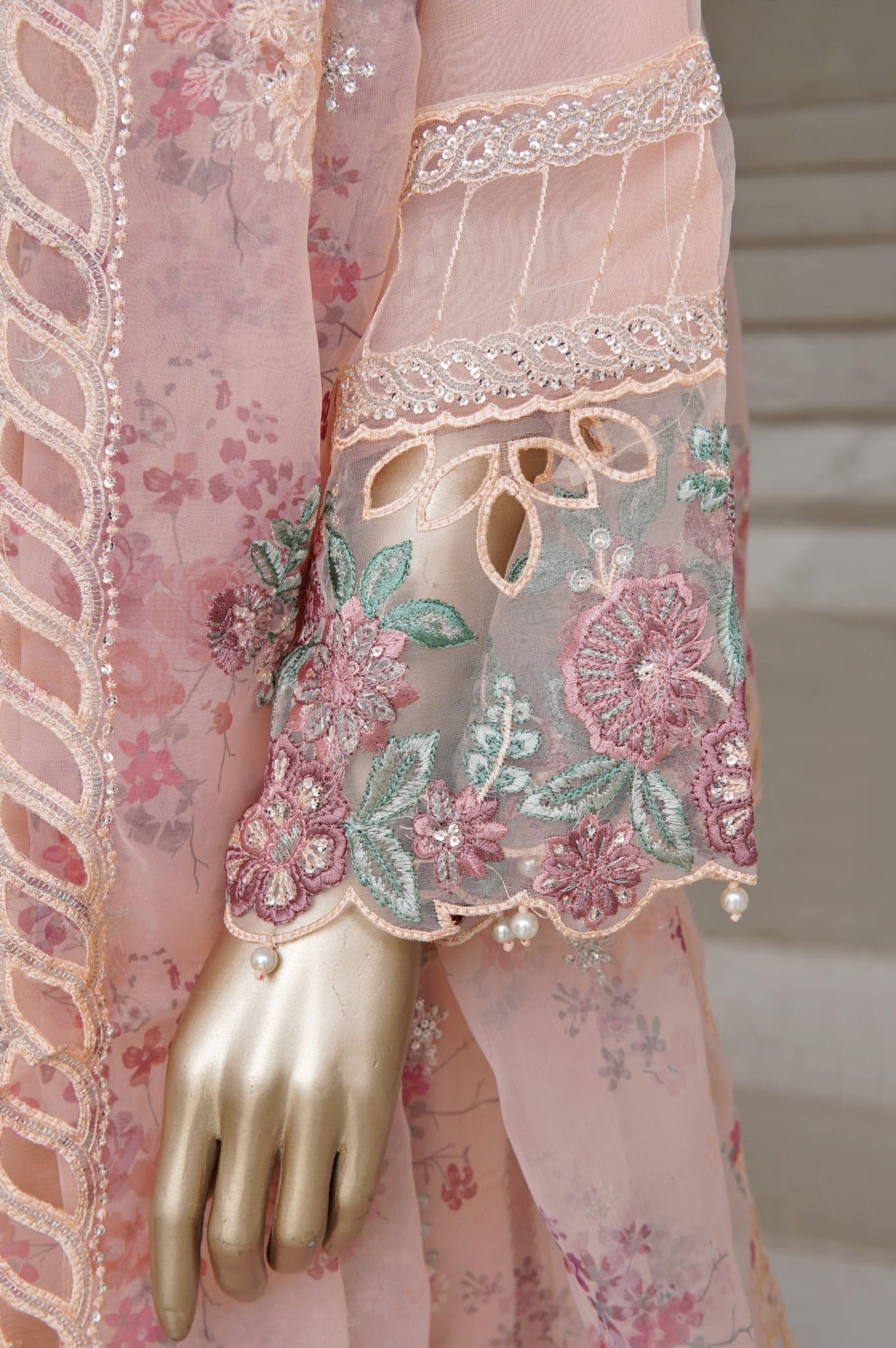 Exclusive Embroidered Stitched Short length Organza Shirt