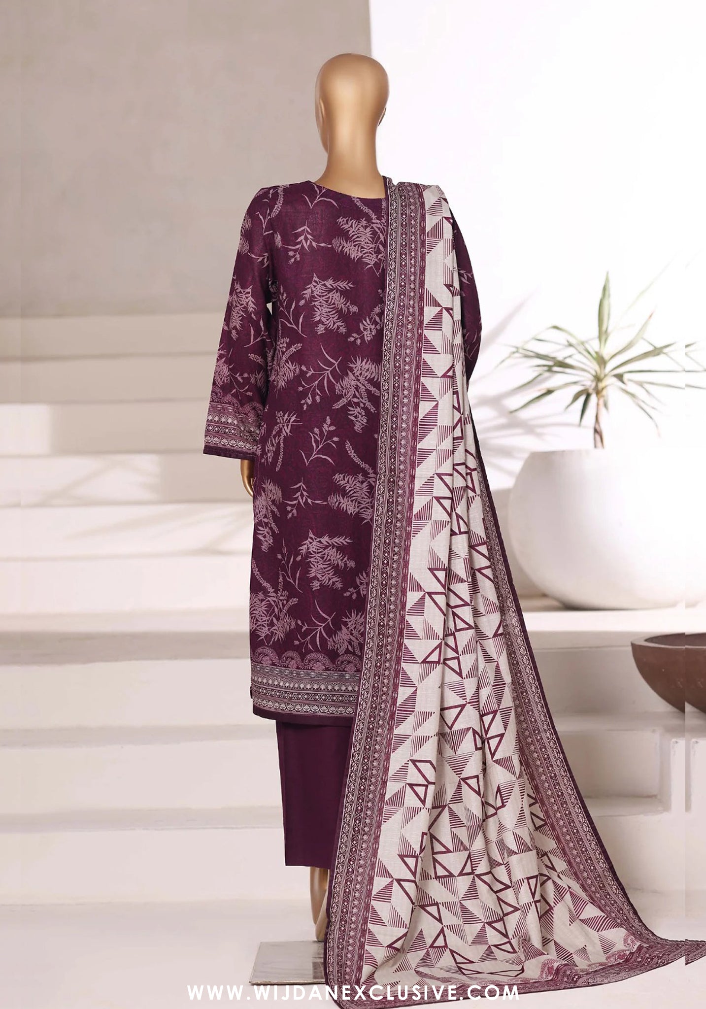 Sadabahar Printed Stitched Khaddar 3PC Collection - 2025 (PURPLE D-08)