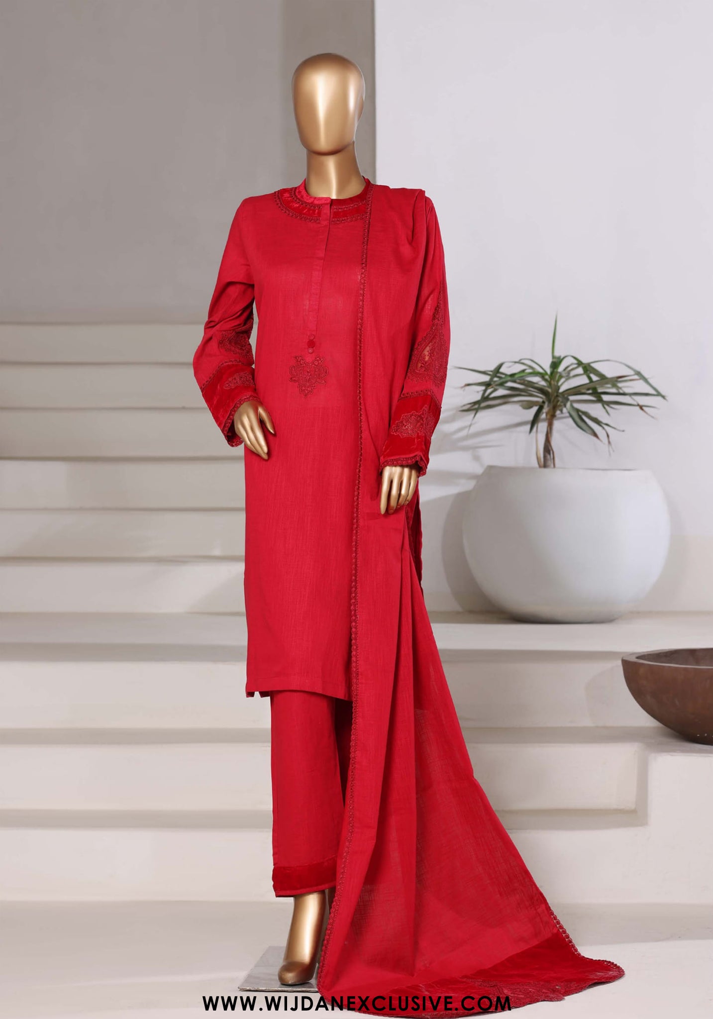 Cross Texture Fabric Dupatta with embroidered bunch/velvet border