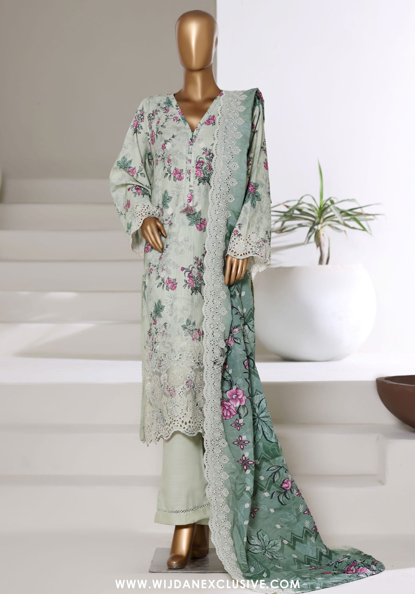 Stitched Chikankari laser fusion khaddar Suit