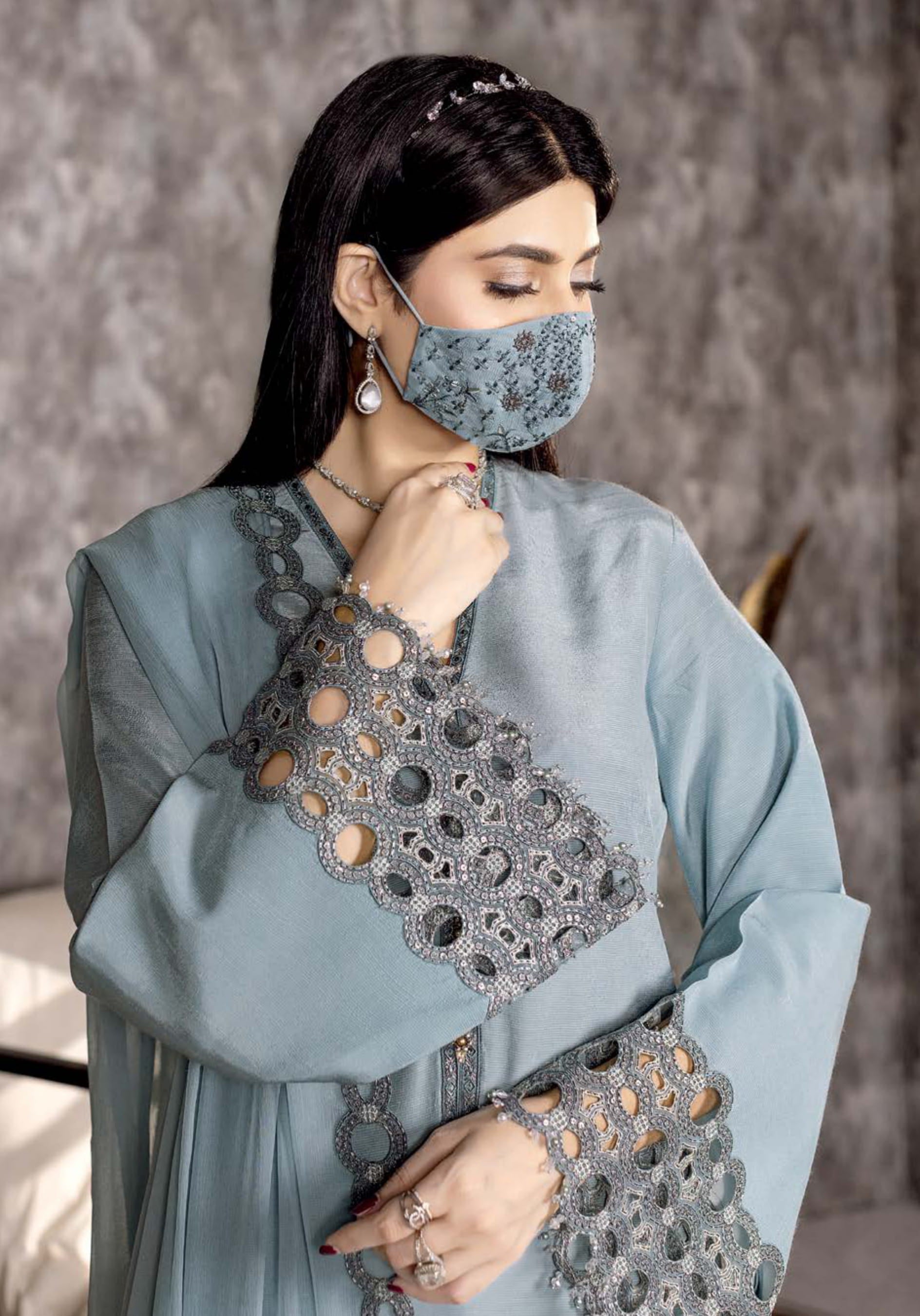 Embroidered Organza Border For Gala (HandMade)