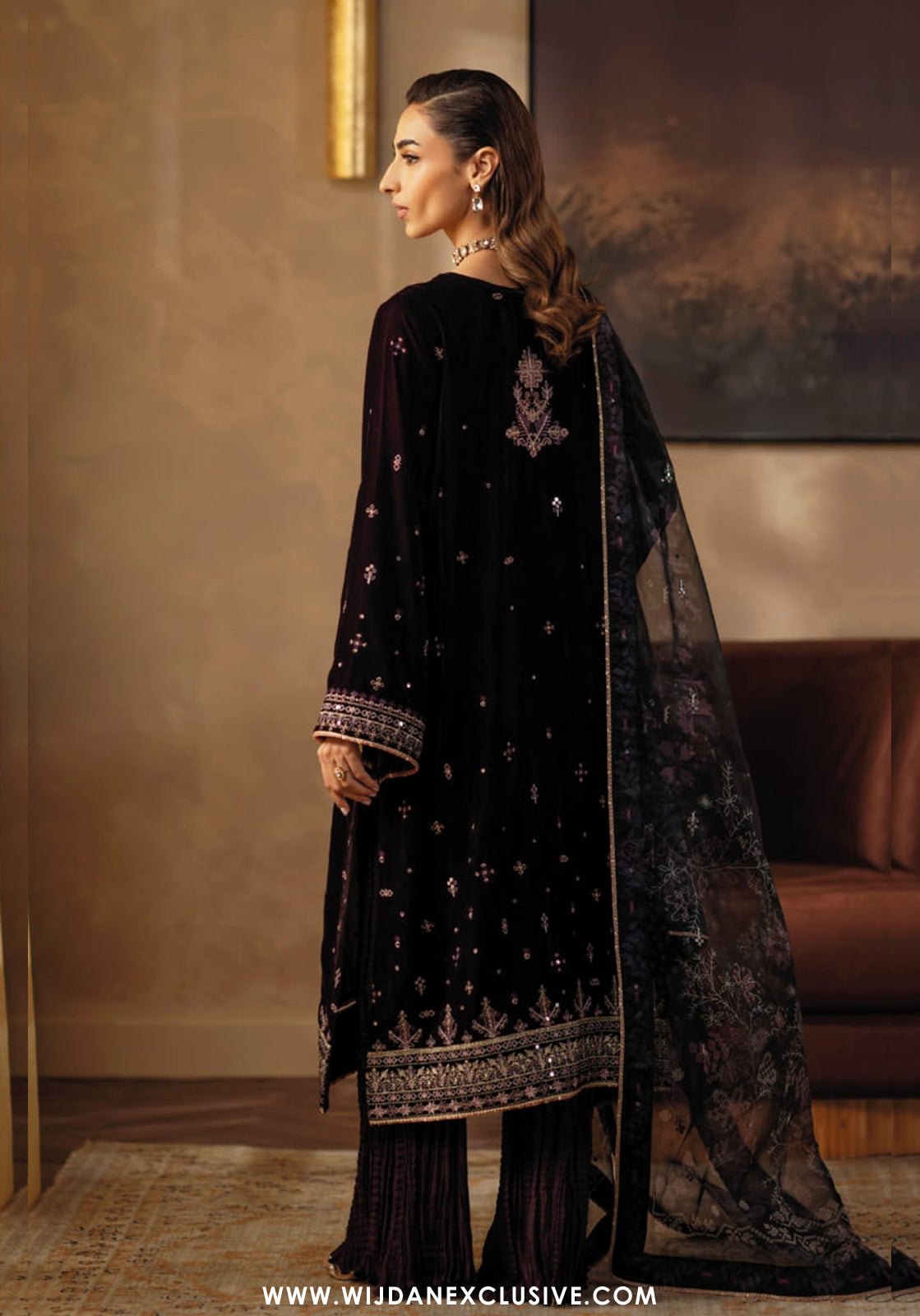 Embroidered Front & Back Hem Border (Velvet) 02 meters