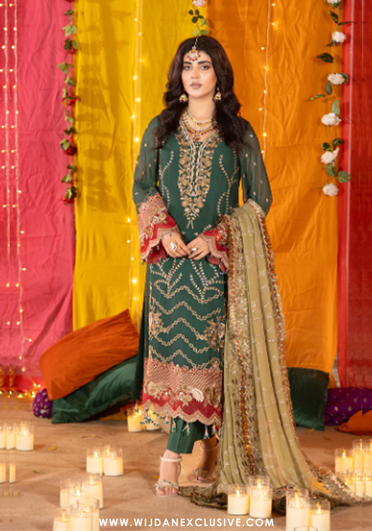 Embroidered chiffon dupatta.