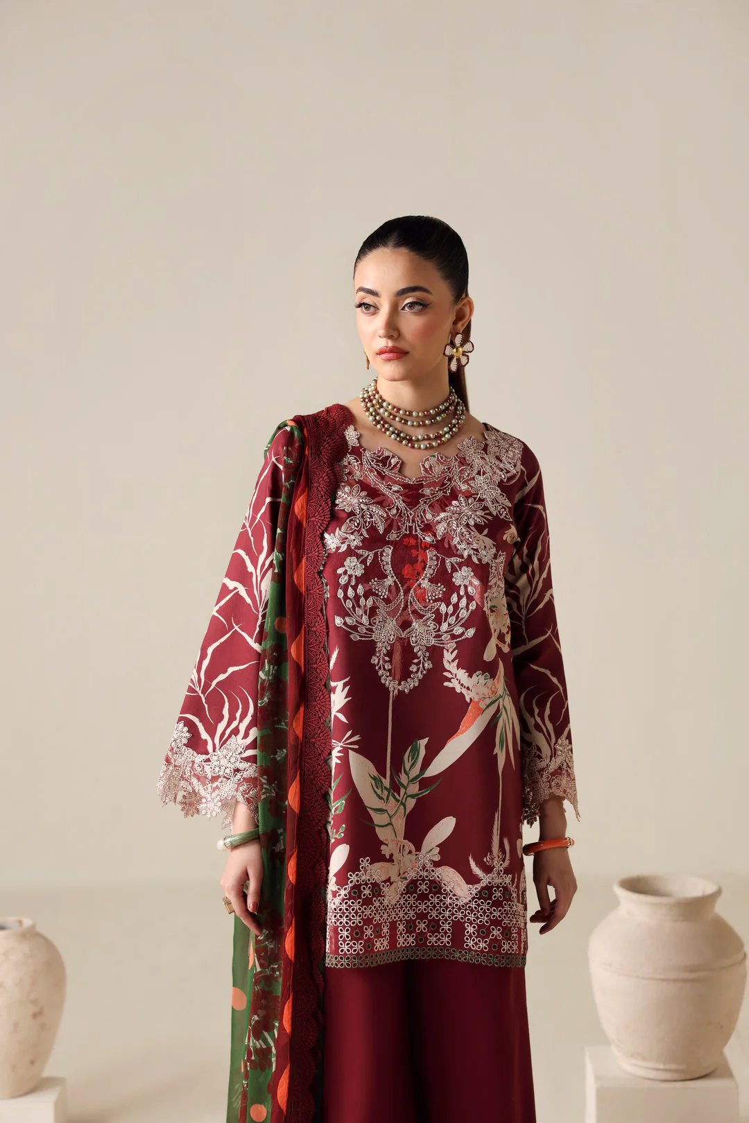Zyrah by Naqsh | Unstitched Fall Winter Collection - 2025 DEEP RED - 00186
